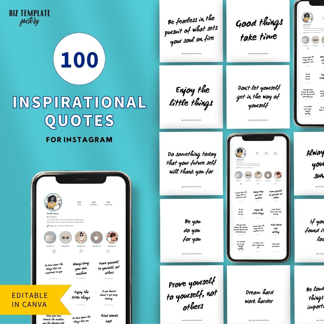 Elevate your social media game and inspire your audience with our pack of 100 Inspirational Quotes for Social Media. Fully editable in Canva.